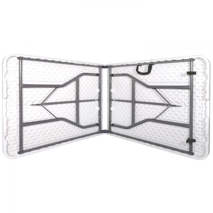 Zu den Merkmalen gehören eine leichte, pulverbeschichtete Beinkonstruktion und ein patentierter Verriegelungsmechanismus, der die gefalteten Beine flach hält, wenn sie nicht verwendet werden. Die Platte besteht aus HDPE-Laminat, die Oberfläche ist unempfindlich gegen Kratzer und Flecken. Klapptische sind vielseitig einsetzbar. Bei Empfängen und Banketten, die von Catering-Unternehmen organisiert werden, können wir die meiste Zeit träumen, aber auch in Haus und Garten bieten sie vielfältige Verwendungsmöglichkeiten.