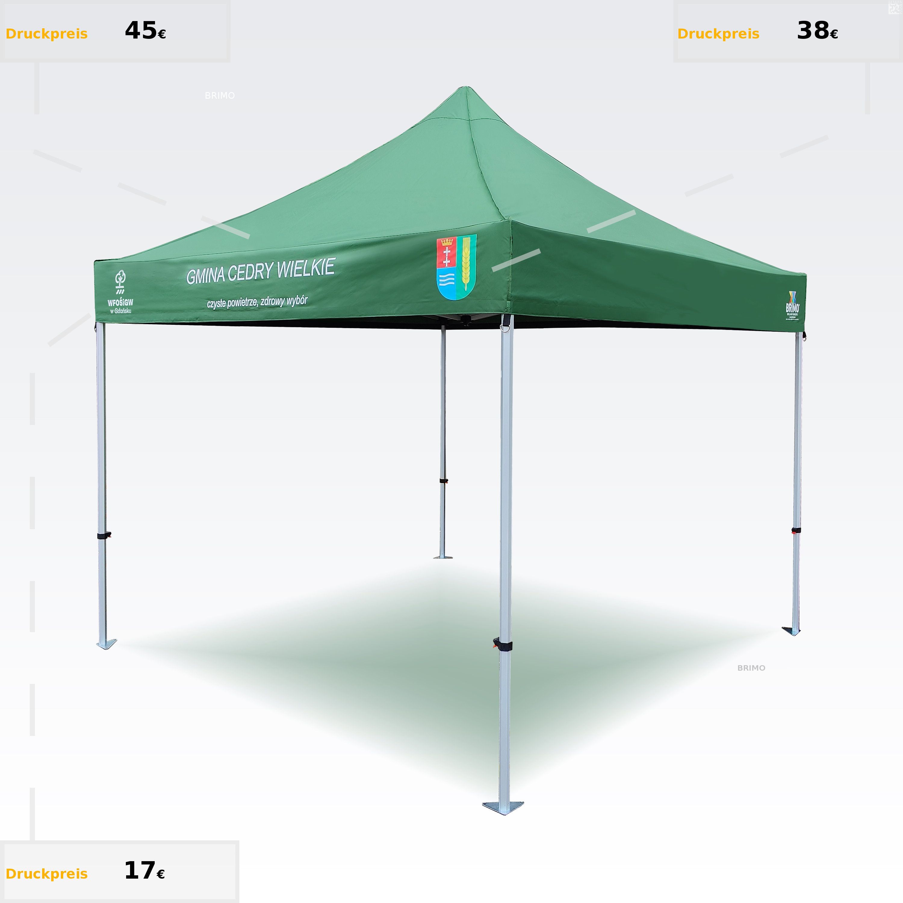 Benötigen Sie eine Werbung, die Sie überall hin begleitet und beim Transport nicht viel Platz einnimmt? Wir haben eine Lösung für Sie. Verwandeln Sie Ihr Zelt in einen perfekten Werbe-Hingucker. Der Stand wird Ihnen helfen, Ihre Ziele zu erreichen. Das Bedrucken des Zeltes erhöht Ihre Glaubwürdigkeit bei den Kunden.
